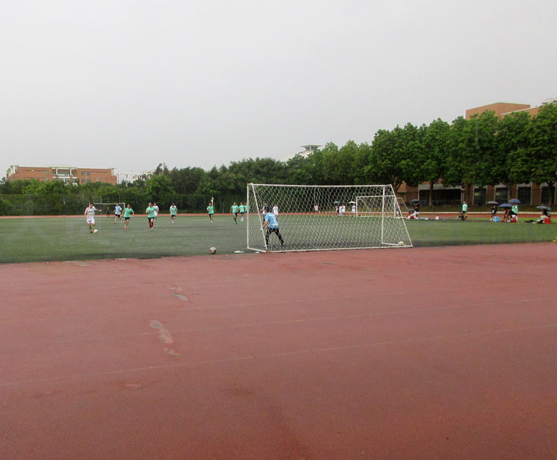 生物和法学院这场,生物学院看似真挺强,上半场就获得两个点球均命中,下半场先是法学院门前一个乌龙球,最后在进球右路下快攻,打进第四球,期间法学院只是靠一次任意球机会间接破蛋进了一个,下半场雨水还比较伴随,生物学院可谓正是酣畅淋漓一场大胜 |