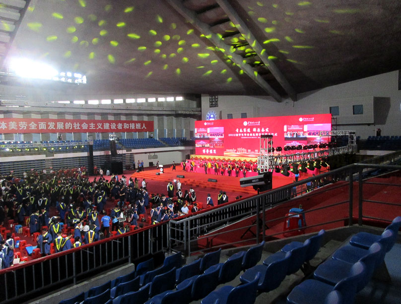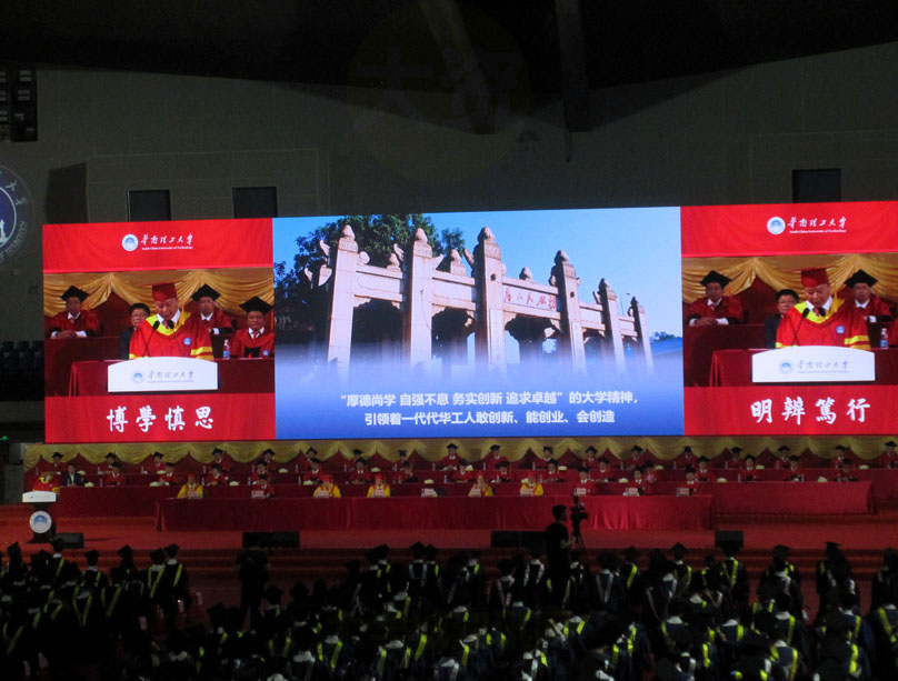 整个典礼仪式主会场就是画面看到的大学城华工体育馆,在五山校区、国际校区和学术大讲堂/音乐厅等设有分会场