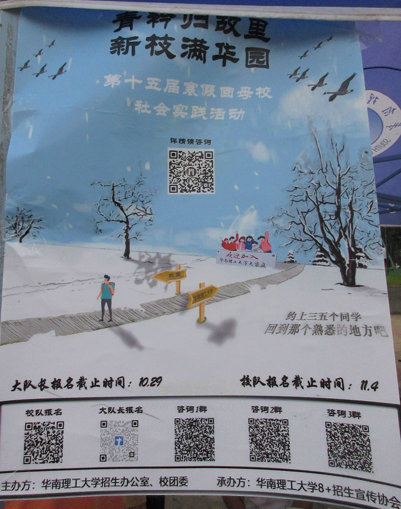 华工第十五届寒假回母校社会实践活动-摊宣正在一二饭前进行 大队长报名截止10月29号 校队报名截止11月4号