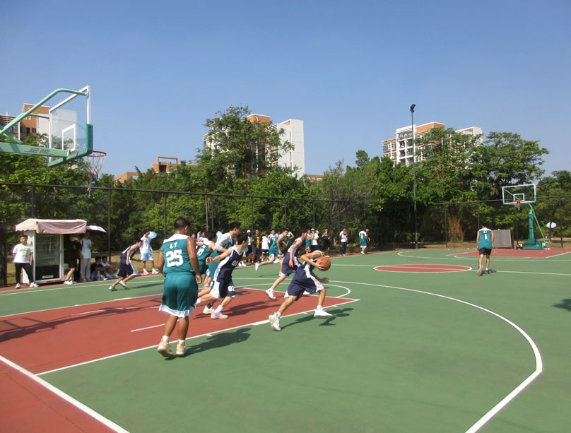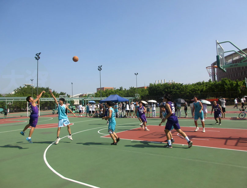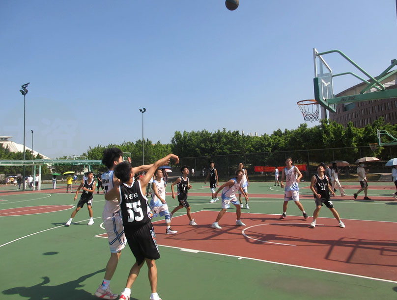 上午时分,教学区篮球场,化学学院的新生杯篮球赛正在热烈进行中 阳光虽然算有点晒,但大家都还挺有活力的
