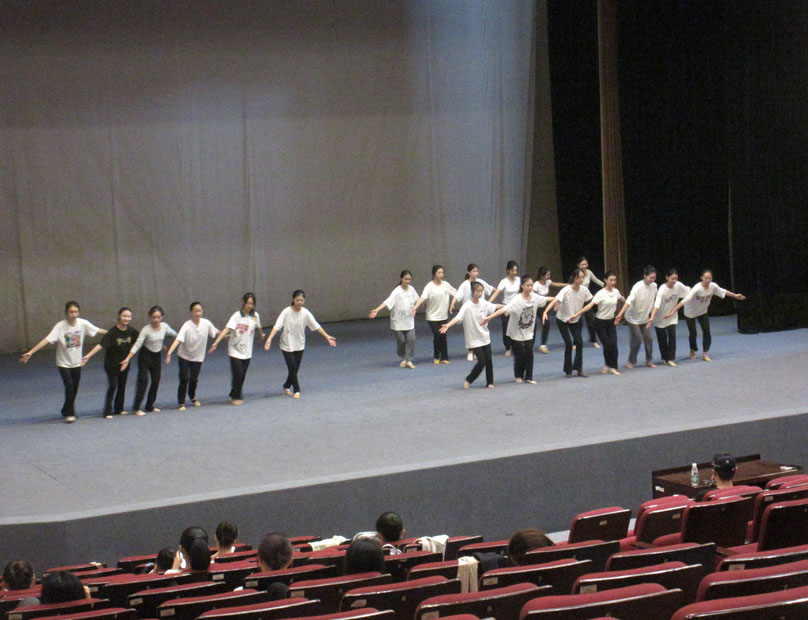 上午10点多左右,学术大讲堂主舞台上,好像有个什么节目(演出)或舞蹈等的在彩排(or排练)喔