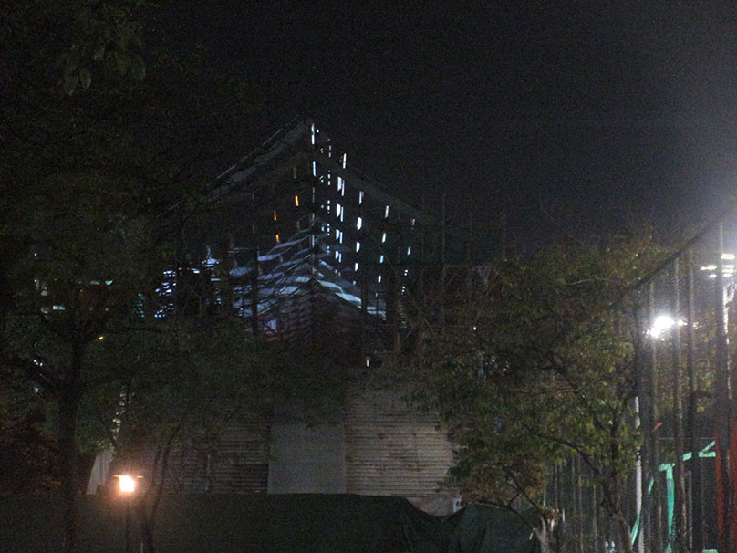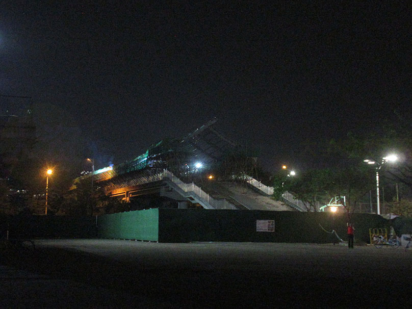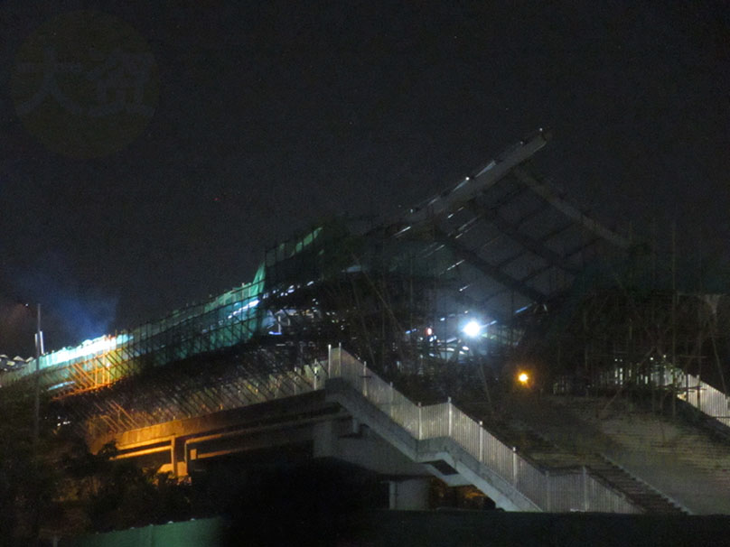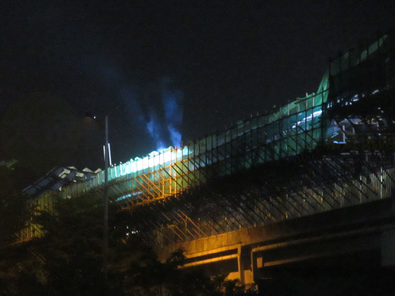 这华工中环北天桥加装顶棚夜晚还在赶工施工喔 焊接直冒焰光&火星子