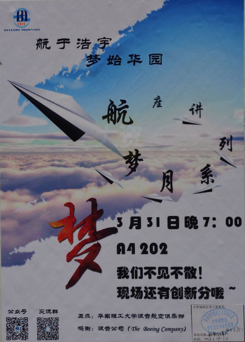 | 波音航空俱乐部|航梦月系列讲座 3月31日晚7:00 A4-202 有创新分 | ||||||