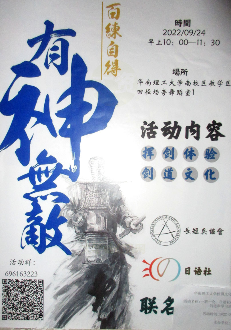 | 百练自得,有神无敌 长短兵协会&日语社联合社团活动 2022.09.24上午10点-11点半 教学区田径场看台下舞蹈室1 | ||||||