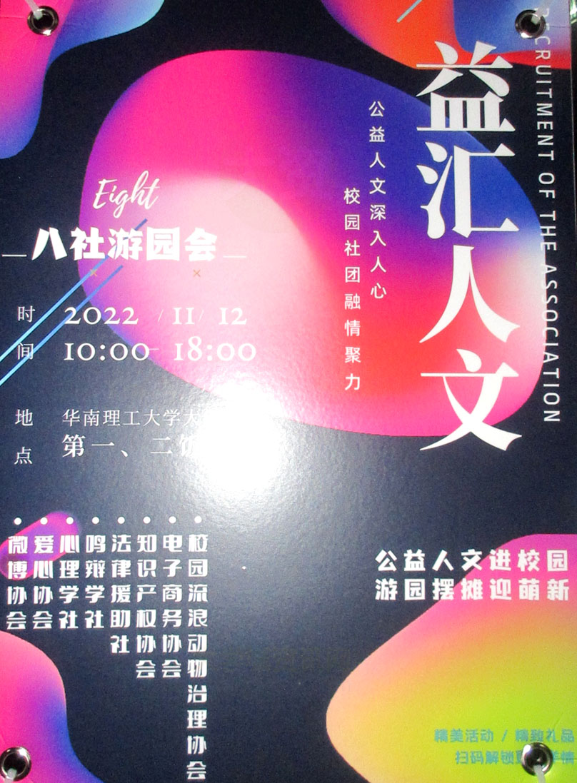 | 益汇人文·八社游园会 2022.11.12周六 上午10点-傍晚18点 生活区一二饭堂前 | ||||||