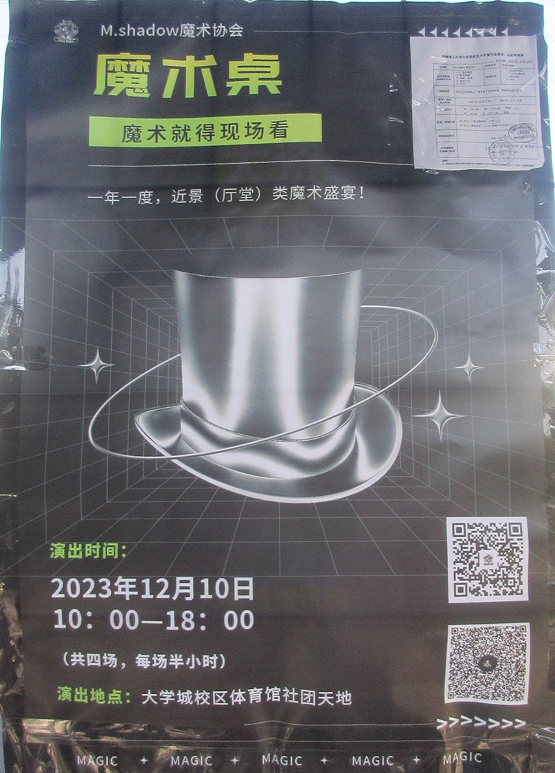 | 华工-M.shadow魔术协会-魔术桌现场表演 2023.12.10周日 上午10点-下午18点 体育馆社团天地 | ||||||