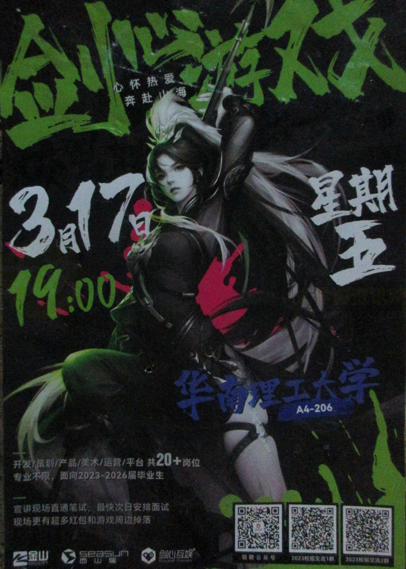 剑心游戏招聘宣讲会 2023.03.17周五晚19点 教学区A4-206 面向2023-2026届学生 |