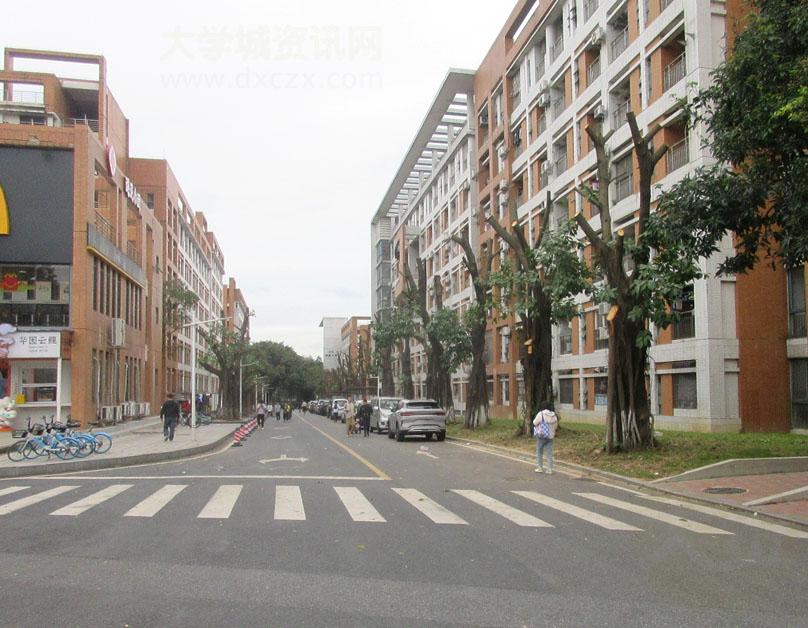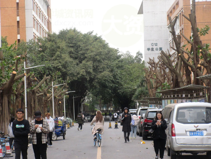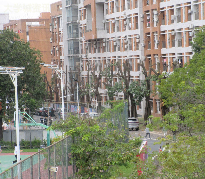 华工-生活区C10栋和C17栋之间校道两旁的树木进行了大幅度修剪削枝干 此路段较之前 看起来视野开阔和敞亮了不少 之前树叶较茂密葱郁 很多时候都显得阴暗和遮盖