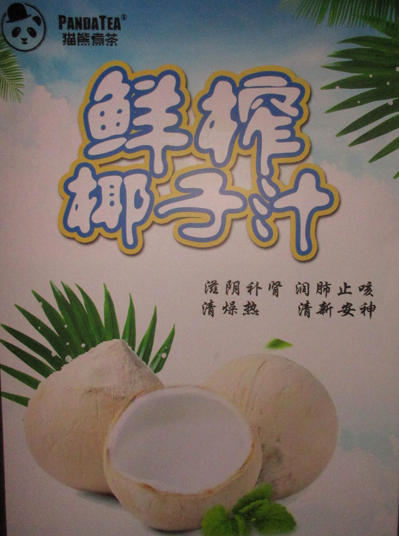 华工生活区-北商业楼-熊猫煮茶 最新推荐 鲜榨椰子汁
