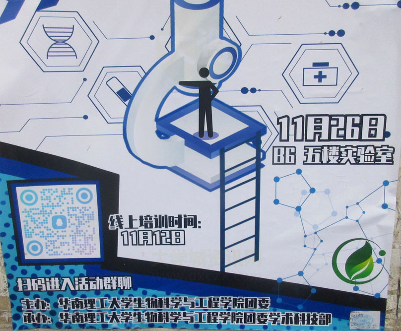 | 华工-生科院-早日走进实验室活动 11月26日 教学区B6栋五楼实验室 线上培训11月12日 扫码进群 | ||||||