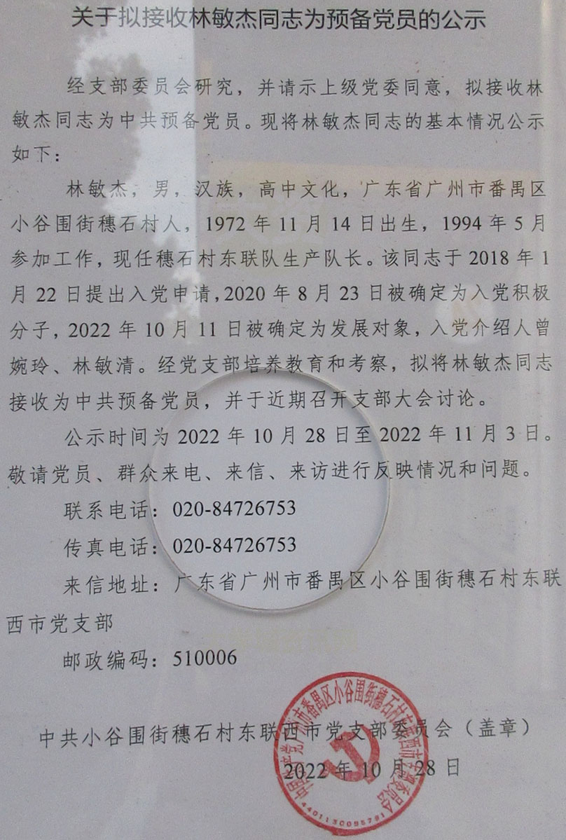 | 关于拟接收林敏杰同志为预备党员的公示 | ||||||