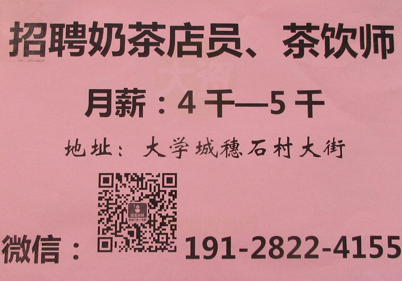 | 穗石村·东门广场 蜜雪冰城 招聘奶茶店员、茶饮师 月薪4千-5千 微电19128224155 | ||||||