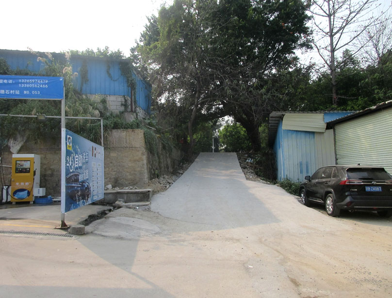 穗石村中部西临边界 友源酒家西侧停车场西北边角带 看到新开了个叫车易爵的自助洗车点 听说已经开了有将近1个月左右 临着村外主干-穗石西北道还专门修筑了一段水泥坡道方便上下进出 该自助洗车点有四个洗车位,看着应该跟贝岗新天地北东角外临中环那个有些相似