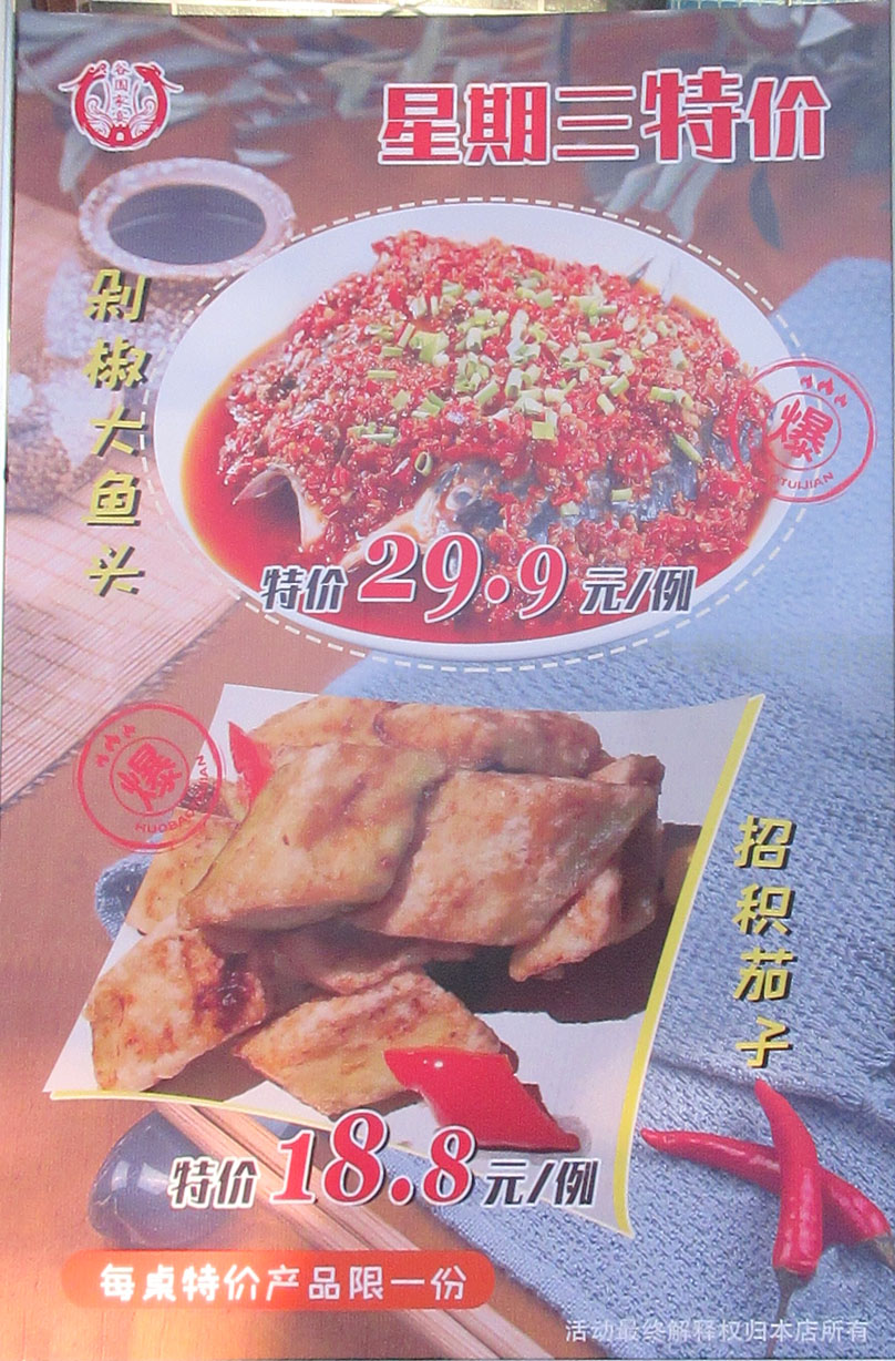 穗石大道西主段东列偏北 谷围家宴 宫廷猪肚羊鸡窝震撼价238元 巴戟杜仲牛鞭火锅震撼价298元 星期三特价-剁椒大鱼头29.9元,招积茄子18.8元,每桌限一份