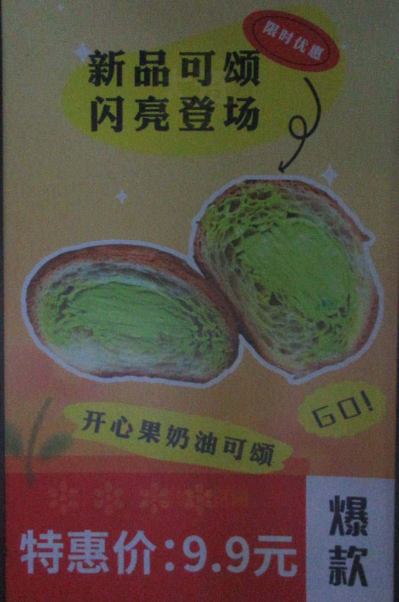 | 穗石-大利家超市南门旁&南列中 海豚烘焙面包店 新品-开心果奶油可颂特惠价9.9元 更多现点现做美样造型面包 早前搭配-贝果&碱水任选2个19.8元 | ||||||