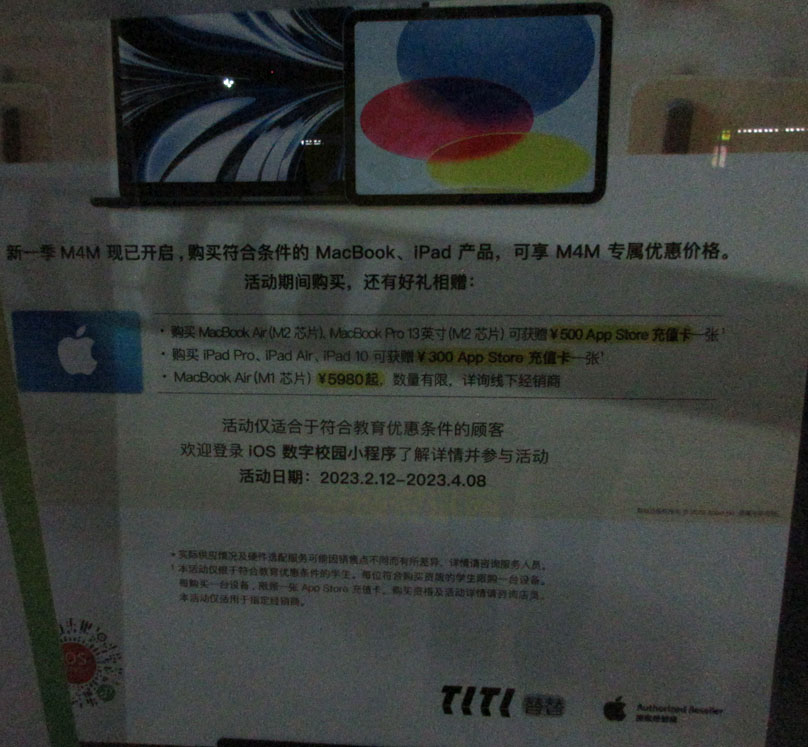 | 购买符合条件的MacBook、iPad产品,可享M4M专属优惠价格 活动期2023.02.12-2023.04.08 | ||||||