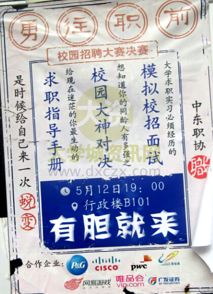 | 勇往职前?校园招聘大赛决赛5.12晚行政楼B101有胆就来 | ||||||