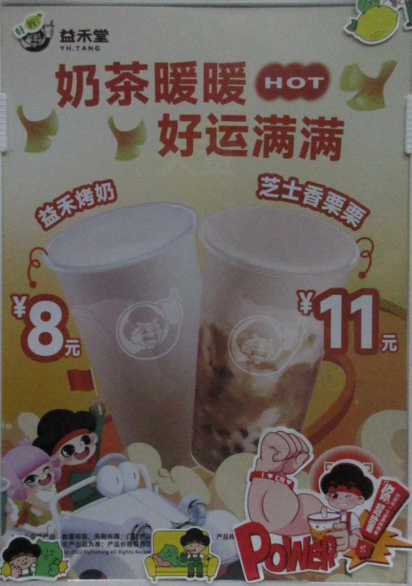 中大生活区至善园4栋北列西 益禾堂 奶茶暖暖HOT好运满满 特促-益禾烤奶8元,芝士香栗栗11元;创新搭配-北美红宝石,蔓越莓麻薯13元