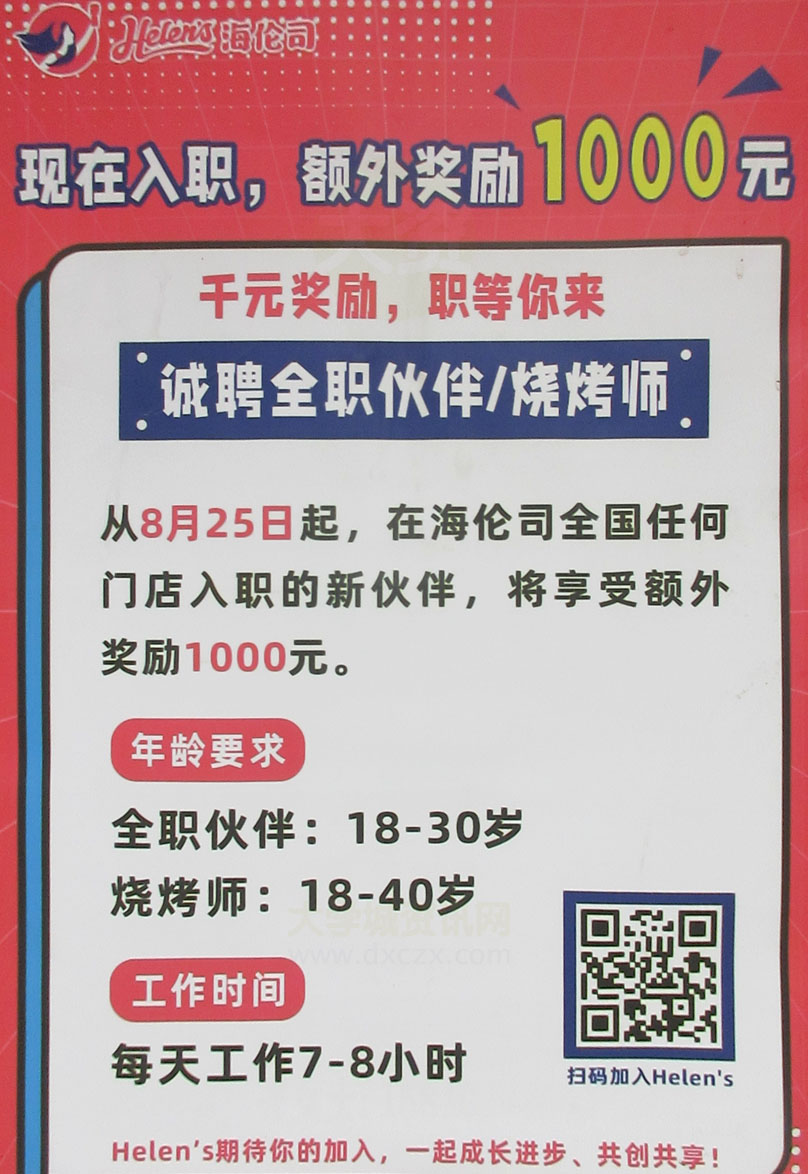 北区-创智园5栋西侧 海伦司小酒馆招聘 全职小伙伴:月薪4500元-5300元 烧烤师/兼职小伙伴/保洁:薪资面试详聊 欢迎扫码了解