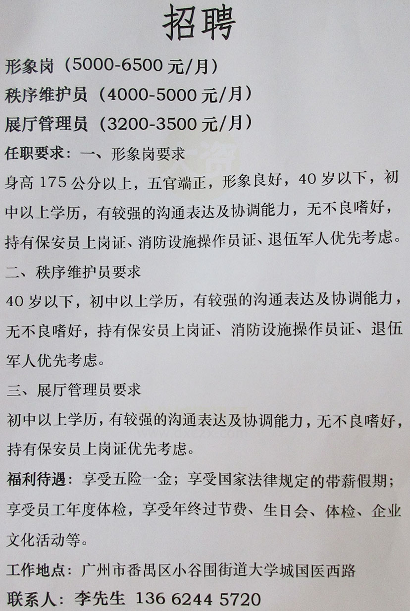 创新城西区展示馆招聘-形象岗、秩序维护员、展厅管理员 & 客服、前台文员